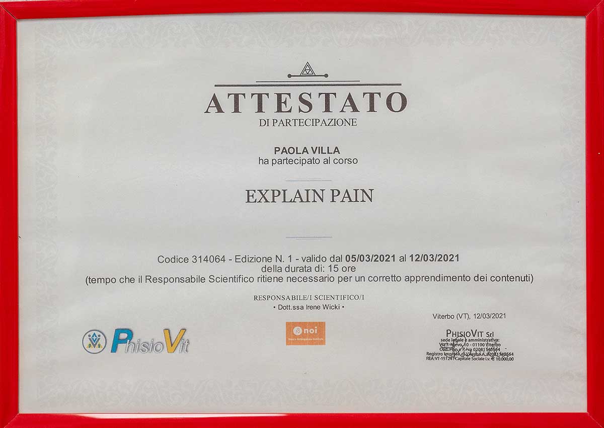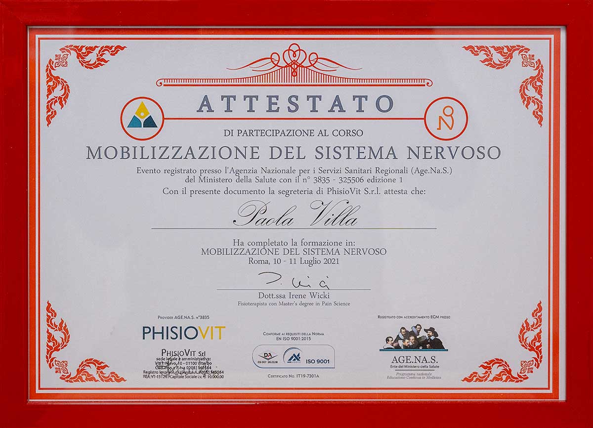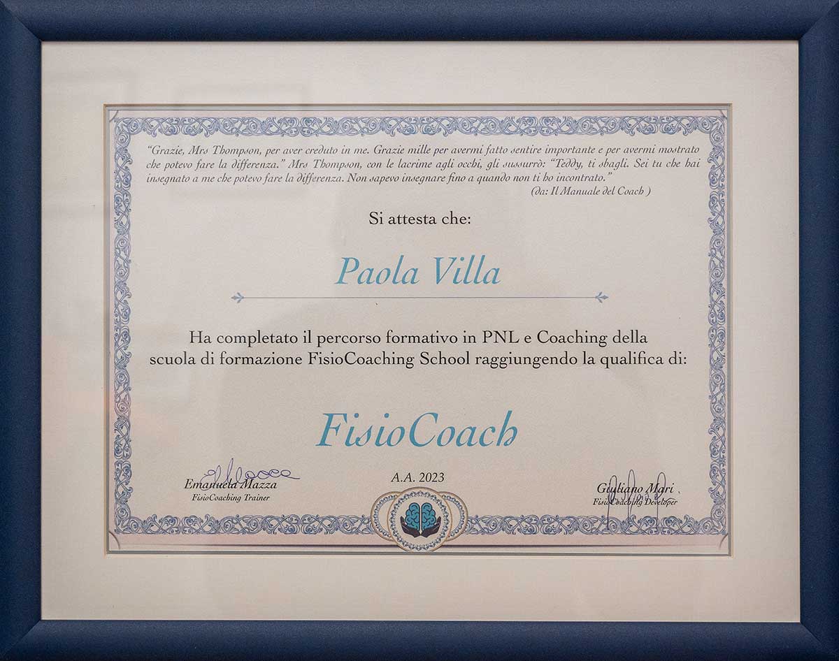 Nel 1999 ho conseguito la laurea in Fisioterapia presso l'Università di Brescia con il massimo dei voti. Da allora, mi sono dedicata alla formazione continua, approfondendo le neuroscienze, il dolore e la neurobiologia. Mi impegno costantemente nell'apprendere le tecniche di terapia manuale più moderne per garantire ai miei pazienti un completo supporto per la salute e il benessere.